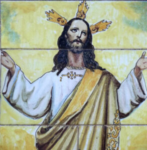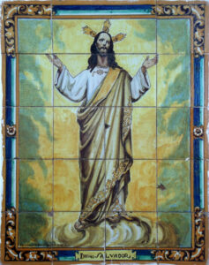 Inicio Obras 08650. Retablo cerámico. Jesús Divino Salvador. Vejer de la Frontera. Cádiz. 08650. Retablo cerámico. Jesús Divino Salvador. Vejer de la Frontera. Cádiz. Código08650Tipo de obraRetablo cerámicoFunciónDevocionalTipo de panelPictóricoAutorDesconocidoTallerMensaque Rodríguez y Compañía. FábricaFuente de autoríaFirmadoCronologíaDécada de 1940Fuente de la cronologíaEstimaciónDimensiones0,60 m. x 0,75 m. (aprox.)Pieza datadaNo Lugar exacto donde se encuentraFachada de edificio municipal. Calle San Juan, 22PoblaciónVejer de la FronteraProvinciaCádizPaísEspañaSituada en elExteriorLugar de producciónSevillaZona de producciónAndalucíaTécnica decorativaAzulejo plano pintadoTema de decoración o temáticaReligiosa - letíficaPersonajes representadosJesús de NazaretAdvocacionesDivino SalvadorEstado de conservaciónPérdidas de vidriado Autor de las fotografíasManuel Pablo Rodríguez Rodríguez. Noviembre 2015