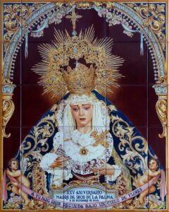 Inicio Obras 08655. Retablo cerámico. Virgen de la Palma. Ceuta. 08655. Retablo cerámico. Virgen de la Palma. Ceuta. Código08655Tipo de obraRetablo cerámicoFunciónDevocionalTipo de panelPictóricoAutorMoya Toro, Francisco JoséFuente de autoríaFirmadoCronología2012Fuente de la cronologíaDatado en la obraDimensiones0,60 m. x 0,75 m. (aprox.)Pieza datadaSi Lugar exacto donde se encuentraCalle JáudenesPoblaciónCeutaPaísEspañaSituada en elExteriorLugar de producciónSevillaZona de producciónAndalucíaTécnica decorativaAzulejo plano pintadoTema de decoración o temáticaReligiosa - pasionistaPersonajes representadosÁngelVirgen MaríaAdvocacionesPalma Autor de las fotografíasFrancisco José Moya Toro. Noviembre 2012