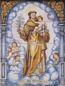 Inicio Obras 08657. Retablo cerámico. San Antonio de Padua. Calle Marqués de la Mina. Sevilla. 08657. Retablo cerámico. San Antonio de Padua. Calle Marqués de la Mina. Sevilla. Código08657Tipo de obraRetablo cerámicoFunciónDevocionalTipo de panelPictóricoAutorAragón Cuesta, JuanTallerÁguilas 25Fuente de autoríaFirmadoCronologíaDécada de 2000Fuente de la cronologíaEstimaciónDimensiones0,45 m. x 0,60 m. (aprox.)Pieza datadaNo Lugar exacto donde se encuentraFachada de domicilio particular. Calle Marqués de la Mina, 4PoblaciónSevillaProvinciaSevillaPaísEspañaSituada en elExteriorLugar de producciónSevillaZona de producciónAndalucíaTécnica decorativaAzulejo plano pintadoTema de decoración o temáticaReligiosa - hagiográficaPersonajes representadosÁngelAntonio de Padua, SanJesús de Nazaret Niño Autor de las fotografíasManuel Pablo Rodríguez Rodríguez. Mayo 2012