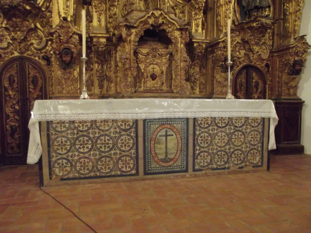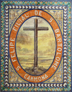 Inicio Obras 08658. Frontal de altar con la Santa Cruz. Iglesia de San Felipe. Carmona. Sevilla. 08658. Frontal de altar con la Santa Cruz. Iglesia de San Felipe. Carmona. Sevilla. Código08658Tipo de obraFrontal de altarFunciónConmemorativaReligiosa, ritualTipo de panelMixto (con decoración pictórica y de patrón)AutorOrce Mármol, EnriqueTallerRamos Rejano, FábricaFuente de autoríaFirmadoCronologíaPrincipios de la década de 1920Fuente de la cronologíaEstimaciónDimensiones0,45 m. x 0,60 m. (aprox.)Pieza datadaNo Lugar exacto donde se encuentraFrontal del altar mayor. Iglesia de San Felipe. Calle San FelipePoblaciónCarmonaProvinciaSevillaPaísEspañaSituada en elInteriorLugar de producciónSevillaZona de producciónAndalucíaTécnica decorativaAristaAzulejo plano pintado Autor de las fotografíasManuel Pablo Rodríguez Rodríguez. Noviembre 2012