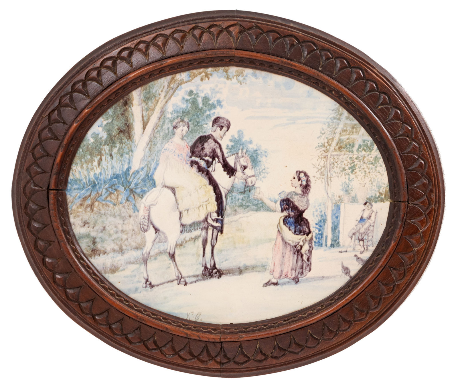 Inicio Obras 08666. Placa con escena galante. (Ubicación desconocida) 08666. Placa con escena galante. (Ubicación desconocida) Código08666Tipo de obraPlacaFunciónOrnamentalTipo de panelPictóricoAutorFourrat Campos, VicenteFuente de autoríaFirmadoCronologíaDécada de 1880Fuente de la cronologíaEstimaciónDimensiones0,40 m. x 0,33 m. (aprox.)Pieza datadaNo Lugar exacto donde se encuentraUbicación desconocidaLugar de producciónSevillaZona de producciónAndalucíaTécnica decorativaAzulejo plano pintadoTema de decoración o temáticaCostumbristaEscena de galanteoEstado de conservaciónRotura Bibliografía Más datosHace pareja con la pieza catalogada con el número 08665. Autor de las fotografíasSubastas Gran Vía de Bilbao
