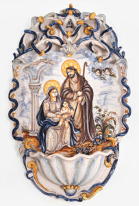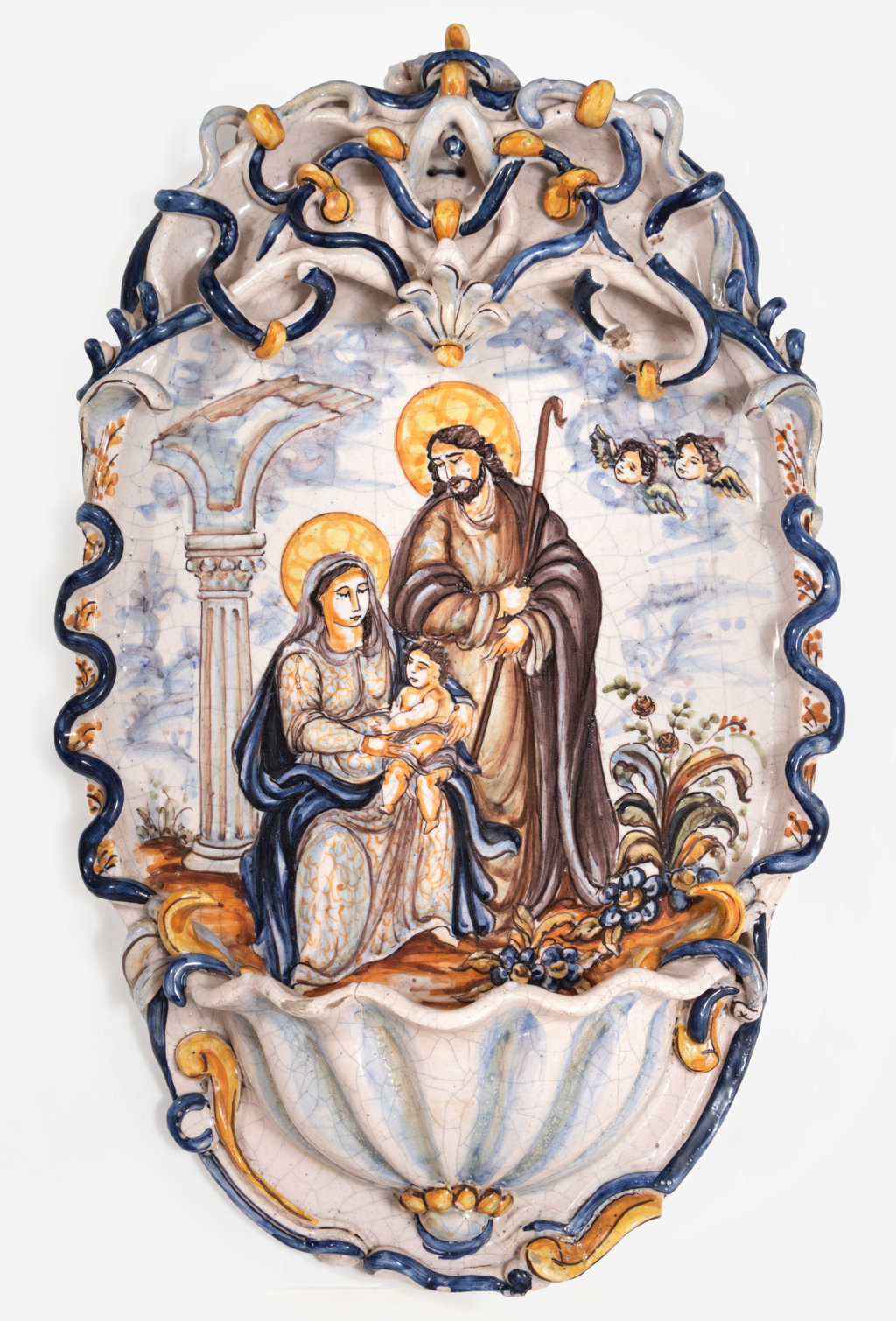 Inicio Obras 08667. Benditera con la Sagrada Familia. (Ubicación desconocida) 08667. Benditera con la Sagrada Familia. (Ubicación desconocida) Código08667Tipo de obraBenditeraLoza estanníferaFunciónReligiosa, ritualAutorAragón Cuesta, JuanTallerÁguilas 25Fuente de autoríaPor operación comparativaCronologíaFinales del siglo XXFuente de la cronologíaEstimaciónDimensiones0,51 m. x 0,35 m. (aprox.)Pieza datadaNo Lugar exacto donde se encuentraUbicación desconocidaLugar de producciónSevillaZona de producciónAndalucíaTécnica conformación empleadaTerracota modeladaTema de decoración o temáticaReligiosa - letíficaEscenaSagrada FamiliaPersonajes representadosÁngelJesús de Nazaret NiñoJosé, SanVirgen María Bibliografía Autor de las fotografíasSubastas Gran Vía de Bilbao