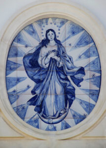 Inicio Obras 08671. Retablo cerámico. Inmaculada Concepción. Gilena. Sevilla. 08671. Retablo cerámico. Inmaculada Concepción. Gilena. Sevilla. Código08671Tipo de obraRetablo cerámicoFunciónDevocionalTipo de panelPictóricoAutorMaireles Vela, FranciscoFuente de autoríaFirmadoCronología1991Fuente de la cronologíaDatado en la obraDimensiones0,80 m. x 1,00 m. (aprox.)Pieza datadaSi Lugar exacto donde se encuentraFachada de la Parroquia de la Inmaculada Concepción. Plaza de la IglesiaPoblaciónGilenaProvinciaSevillaPaísEspañaSituada en elExteriorLugar de producciónSevillaZona de producciónAndalucíaTécnica decorativaAzulejo plano pintadoTema de decoración o temáticaReligiosa - letíficaPersonajes representadosVirgen MaríaAdvocacionesInmaculada Más datosLa Inmaculada Concepción es la Patrona de esta localidad. Hay que recordar también que el autor de este azulejo nació en esta población. Autor de las fotografíasManuel Pablo Rodríguez Rodríguez. Abril 2013