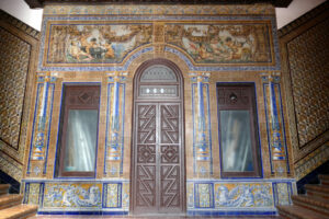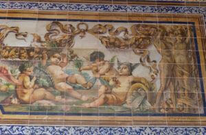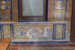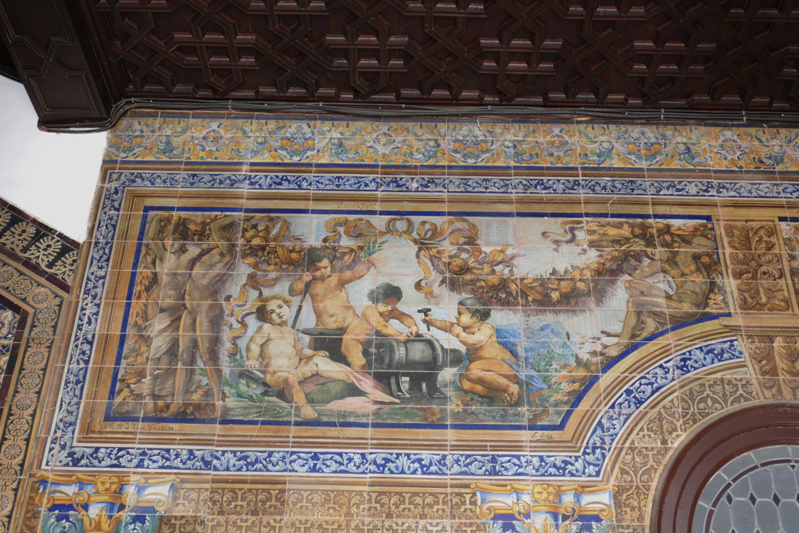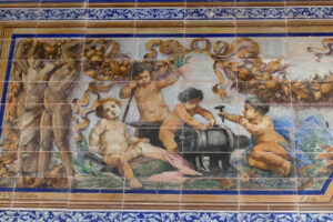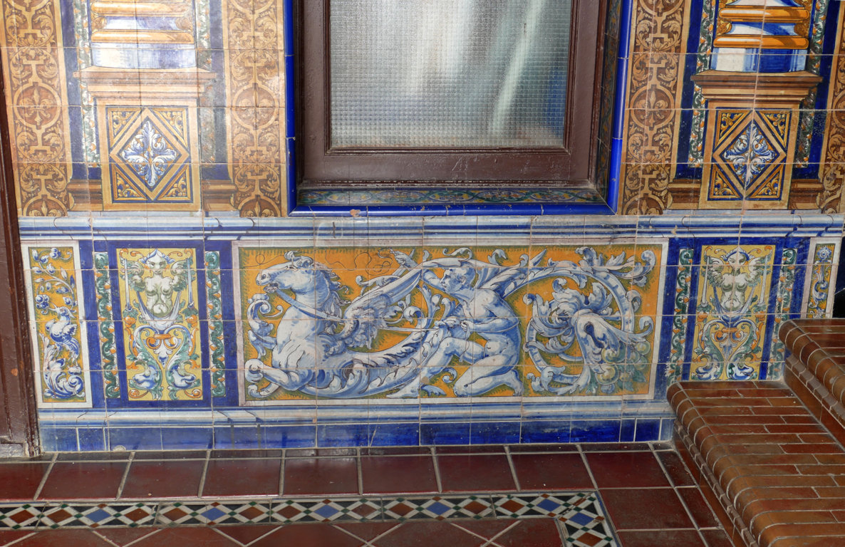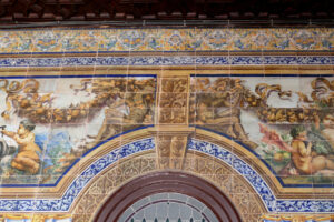 Inicio Obras 08683. Puerta de Navarra. Atrio de acceso exterior (zona B). Plaza de España. Sevilla. 08683. Puerta de Navarra. Atrio de acceso exterior (zona B). Plaza de España. Sevilla. Código08683Tipo de obraZócaloZócalo-paramentoFunciónArquitectónicaTipo de panelPictóricoAutorOrce Mármol, EnriqueTallerTova Villalva, José (Viuda de). FábricaFuente de autoríaFirmadoCronología1925Fuente de la cronologíaEstimaciónPieza datadaNo Lugar exacto donde se encuentraPlaza de EspañaPoblaciónSevillaProvinciaSevillaPaísEspañaSituada en elInteriorLugar de producciónSevillaZona de producciónAndalucíaTécnica decorativaAzulejo plano pintadoTema de decoración o temáticaAlegóricaNeorrenacentista BibliografíaVV. AA. (2014). La cerámica en la Plaza de España de Sevilla. Empresa Metropolitana de Abastecimiento y Saneamiento de Aguas de Sevilla. Documentos sobre la Exposición Iberoamericana de Sevilla, 1929, publicados en retabloceramico (VER) Más datosEn el friso superior vemos una alegoría del trabajo. ConjuntoSevilla. Exposición Iberoamericana de 1929Sevilla. Exposición Iberoamericana de 1929. Plaza de España (IV). Puerta de Aragón Autor de las fotografíasMartín Carlos Palomo García y Antonio Entrena Aznarte. Marzo 2023 - Abril 2025