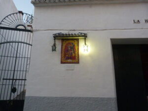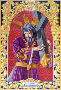 Inicio Obras 08698. Retablo cerámico. Jesús Nazareno. Moguer. Huelva. 08698. Retablo cerámico. Jesús Nazareno. Moguer. Huelva. Código08698Tipo de obraRetablo cerámicoFunciónDevocionalTipo de panelPictóricoAutorSánchez Palacios, EmilioFuente de autoríaFirmadoCronología2012Fuente de la cronologíaConocimiento directoDimensiones0,60 m. x 0,90 m. (aprox.)Pieza datadaSi Lugar exacto donde se encuentraFachada de la bodega La Herrería. Calle Alonso Niño, 31PoblaciónMoguerProvinciaHuelvaPaísEspañaSituada en elExteriorLugar de producciónSevillaZona de producciónAndalucíaTécnica decorativaAzulejo plano pintadoTema de decoración o temáticaReligiosa - pasionistaEscenaJesús con la cruz al hombroPersonajes representadosJesús de NazaretAdvocacionesNazareno Autor de las fotografíasManuel Quiles Pastor. Octubre 2012