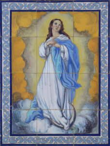 Inicio Obras 08740. Retablo cerámico. Inmaculada Concepción. Corteconcepción. Huelva. 08740. Retablo cerámico. Inmaculada Concepción. Corteconcepción. Huelva. Código08740Tipo de obraRetablo cerámicoFunciónDevocionalTipo de panelPictóricoAutorDesconocidoCronologíaDécada de 1930Fuente de la cronologíaEstimaciónDimensiones0,60 m. x 0,80 m. (aprox.)Pieza datadaNo Lugar exacto donde se encuentraFachada de domicilio particular. Calle Real, 4PoblaciónCorteconcepciónProvinciaHuelvaPaísEspañaSituada en elExteriorLugar de producciónSevillaZona de producciónAndalucíaTécnica decorativaMixta de cuerda seca y azulejo plano pintadoTema de decoración o temáticaReligiosa - letíficaReproducción de cuadroPersonajes representadosVirgen MaríaAdvocacionesInmaculada Más datosLas piezas de las esquinas superiores están mal colocadas. Fuente gráficaLienzo de Bartolomé Esteban Murillo conservado en el Museo del Prado Inmaculada de los Venerables. Cuadro de Bartolomé Esteban Murillo que se encuentra en el Museo del Prado, fuente iconográfica de este retablo. Autor de las fotografíasManuel Pablo Rodríguez Rodríguez. Diciembre 2013