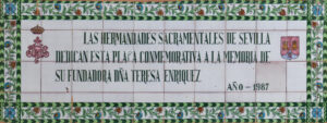 Inicio Obras 08744. Panel conmemorativo. Teresa Enríquez. Plaza de Doña Teresa Enríquez. Sevilla. 08744. Panel conmemorativo. Teresa Enríquez. Plaza de Doña Teresa Enríquez. Sevilla. Código08744Tipo de obraPanel de azulejosFunciónConmemorativaTipo de panelPictóricoAutorDesconocidoCronología1987Fuente de la cronologíaDatado en la obraDimensiones1,60 m. x 0,60 m. (aprox.)Pieza datadaSi Lugar exacto donde se encuentraFachada trasera de la Iglesia de San Vicente. Plaza de Doña Teresa EnríquezPoblaciónSevillaProvinciaSevillaPaísEspañaSituada en elExteriorLugar de producciónSevillaZona de producciónAndalucíaTécnica decorativaAzulejo plano pintadoTema de decoración o temáticaEpigráficaHeráldica Autor de las fotografíasAntonio Entrena Aznarte. Agosto 2021