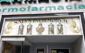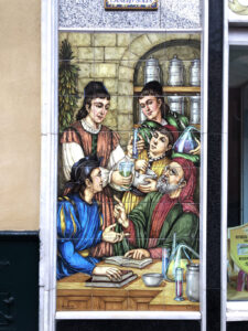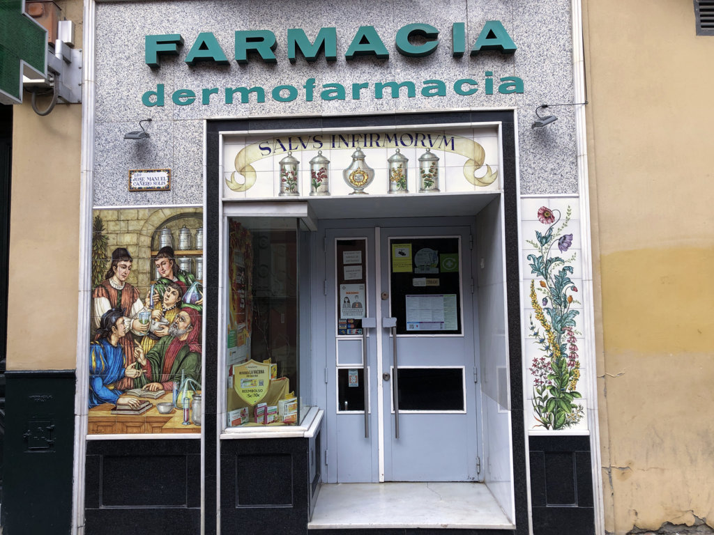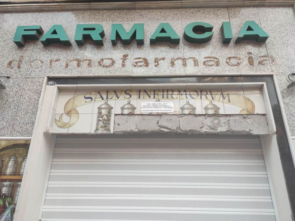 Inicio Obras 08748. Paneles publicitarios y decorativos. Oficina de farmacia. Calle Alhóndiga. Sevilla. 08748. Paneles publicitarios y decorativos. Oficina de farmacia. Calle Alhóndiga. Sevilla. Código08748Tipo de obraPanel de azulejosFunciónOrnamentalPublicitariaTipo de panelPictóricoAutorCaro Parra, AntonioFuente de autoríaFirmadoCronología1986Fuente de la cronologíaComunicación de Martín Carlos Palomo GarcíaPieza datadaSi Lugar exacto donde se encuentraCalle Alhóndiga, 6PoblaciónSevillaProvinciaSevillaPaísEspañaSituada en elExteriorLugar de producciónSevillaZona de producciónAndalucíaTécnica decorativaAzulejo plano pintadoTema de decoración o temáticaOficios Más datosEl panel superior fue retirado de la fachada tras el desprendimiento de parte de sus piezas Autor de las fotografíasAntonio Entrena Aznarte. Noviembre 2021. Martín Carlos Palomo García.