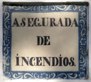 Más tarde en el año 1834, en Sevilla se crea otra sociedad con los mismos fines, la Compañía de Seguros Mutuos Contra Incendios de las Casas de Sevilla, y en uno de sus artículos también obligaba al asegurado a poner en sitio visible la placa cerámica que indicara ASEGURADA DE INCENDIOS e incluso que se pudiera especificar en la misma, el número que correspondiera a la casa. Y esta es la razón por la que todavía, estando ya en el siglo XXI, podemos encontrarnos en algunos edificios antiguos los mencionados azulejos con dicho rótulo.