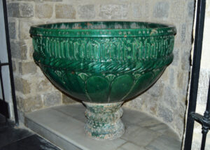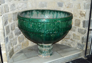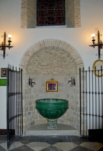 Inicio Obras 08756. Pila bautismal. Parroquia de San Bartolomé. Jaén. 08756. Pila bautismal. Parroquia de San Bartolomé. Jaén. Código08756Tipo de obraLoza estanníferaPila bautismalFunciónReligiosa, ritualCronologíaSiglo XVFuente de la cronologíaBibliografíaPieza datadaNo Lugar exacto donde se encuentraIglesia de San BartoloméPoblaciónJaénProvinciaJaénPaísEspañaSituada en elInteriorZona de producciónAndalucíaTécnica conformación empleadaUrdidoTécnica decorativaAplicaciónVidriadoTema de decoración o temáticaEpigráficaSeriePilas bautismales mudéjaresPeriodoMudéjar BibliografíaBibliografía que sobre el tema tenemos publicada en la web (VER) Autor de las fotografíasJosé Ramón Pizarro García. Noviembre 2025