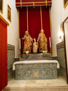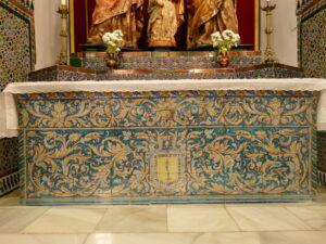 Inicio Obras 08769. Frontal de Altar. Iglesia de Nuestra Señora de la O. Calle Castilla. Sevilla. 08769. Frontal de Altar. Iglesia de Nuestra Señora de la O. Calle Castilla. Sevilla. Código08769Tipo de obraFrontal de altarFunciónReligiosa, ritualTipo de panelPictóricoAutorDesconocidoTallerMontalván. FábricaFuente de autoríaFirmadoCronología1939Fuente de la cronologíaBibliografíaDimensiones2,40 m. x 1,00 m. (aprox.)Pieza datadaSi Lugar exacto donde se encuentraAltar de la Sagrada Familia. Iglesia de Nuestra Señora de la O. Calle CastillaPoblaciónSevillaProvinciaSevillaPaísEspañaSituada en elInteriorLugar de producciónSevillaZona de producciónAndalucíaTécnica decorativaAzulejo plano pintado BibliografíaPalomo García, Martín Carlos. (2007). Coronación de la Virgen de la O. Boletín de las Cofradías de Sevilla, nº 580, pp. 509-518. Más datosTiene algunas piezas mal colocadas. ConjuntoSevilla. Iglesia de Nuestra Señora de la O Autor de las fotografíasAntonio Entrena Aznarte. Marzo 2023