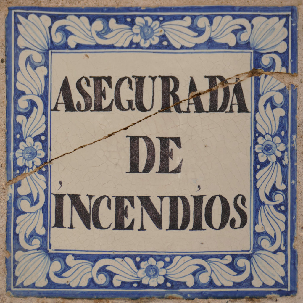 Más tarde en el año 1834, en Sevilla se crea otra sociedad con los mismos fines, la Compañía de Seguros Mutuos Contra Incendios de las Casas de Sevilla, y en uno de sus artículos también obligaba al asegurado a poner en sitio visible la placa cerámica que indicara ASEGURADA DE INCENDIOS e incluso que se pudiera especificar en la misma, el número que correspondiera a la casa. Y esta es la razón por la que todavía, estando ya en el siglo XXI, podemos encontrarnos en algunos edificios antiguos los mencionados azulejos con dicho rótulo.
