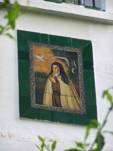 Inicio Obras 08774. Retablo cerámico. Santa Teresa de Jesús. Calle Montevideo. Sevilla. 08774. Retablo cerámico. Santa Teresa de Jesús. Calle Montevideo. Sevilla. Código08774Tipo de obraRetablo cerámicoFunciónDevocionalTipo de panelPictóricoAutorDesconocidoCronología1930. ca.Fuente de la cronologíaEstimaciónDimensiones0,45 m. x 0,60 m. (aprox.)Pieza datadaNo Lugar exacto donde se encuentraFachada de domicilio particular. Calle Montevideo, 14PoblaciónSevillaProvinciaSevillaPaísEspañaSituada en elExteriorLugar de producciónSevillaZona de producciónAndalucíaTécnica decorativaAzulejo plano pintadoTema de decoración o temáticaReligiosa - hagiográficaPersonajes representadosEspíritu SantoTeresa de Jesús, Santa Autor de las fotografíasAntonio Entrena Aznarte. Marzo 2023