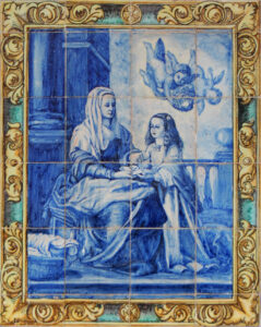 Inicio Obras 08778. Retablo cerámico. Santa Ana enseñando a leer a la Virgen. Calle Pedro del Toro. Sevilla. 08778. Retablo cerámico. Santa Ana enseñando a leer a la Virgen. Calle Pedro del Toro. Sevilla. Código08778Tipo de obraRetablo cerámicoFunciónDevocionalTipo de panelPictóricoAutorVives, M.TallerMensaque Rodríguez y Compañía. FábricaFuente de autoríaFirmadoCronología1928Fuente de la cronologíaDatado en la obraDimensiones0,60 m. x 0,75 m. (aprox.)Pieza datadaSi Lugar exacto donde se encuentraZaguán de domicilio particular. Calle Pedro del Toro, 12PoblaciónSevillaProvinciaSevillaPaísEspañaSituada en elInteriorLugar de producciónSevillaZona de producciónAndalucíaTécnica decorativaAzulejo plano pintadoTema de decoración o temáticaReligiosa - hagiográficaReproducción de cuadroEscenaSanta Ana enseñando a leer a la VirgenPersonajes representadosAna, SantaÁngelVirgen María Fuente gráficaLienzo de Bartolomé Esteban Murillo conservado en el Museo del Prado Fuente iconográfica utilizada por el pintor. Fotografía: Museo del Prado. Autor de las fotografíasJosé Peña Bernal. Julio 2012
