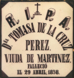 Inicio Obras 08780. Lápida funeraria. Cementerio. Ayamonte. Huelva. 08780. Lápida funeraria. Cementerio. Ayamonte. Huelva. Código08780Tipo de obraLápida funerariaFunciónFunerariaTipo de panelPictóricoAutorDesconocidoCronología1858Fuente de la cronologíaDatada en la obraPieza datadaSi Lugar exacto donde se encuentraCementerioPoblaciónAyamonteProvinciaHuelvaPaísEspañaSituada en elInteriorLugar de producciónSevillaZona de producciónAndalucíaTécnica decorativaAzulejo plano pintadoTema de decoración o temáticaEpigráfica ConjuntoAyamonte. Cementerio Municipal Autor de las fotografíasHugo Gómez Jesús. Noviembre 2025