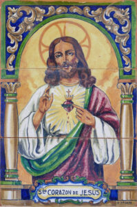Inicio Obras 08800. Retablo cerámico. Sagrado Corazón de Jesús. Almendralejo. Badajoz. 08800. Retablo cerámico. Sagrado Corazón de Jesús. Almendralejo. Badajoz. Código08800Tipo de obraRetablo cerámicoFunciónDevocionalTipo de panelPictóricoAutorDesconocidoTallerNavia Campos, Pedro. Nuestra Señora de la Piedad. FábricaFuente de autoríaFirmadoCronologíaDécada de 1950Fuente de la cronologíaEstimaciónDimensiones0,28 m. x 0,42 m. (aprox.)Pieza datadaNo Lugar exacto donde se encuentraFachada de domicilio particular. Calle Guadalupe, 33PoblaciónAlmendralejoProvinciaBadajozPaísEspañaSituada en elExteriorLugar de producciónSevillaZona de producciónAndalucíaTécnica decorativaAzulejo plano pintadoTema de decoración o temáticaReligiosa - letíficaPersonajes representadosJesús de NazaretAdvocacionesCorazón de Jesús Autor de las fotografíasManuel Pablo Rodríguez Rodríguez. Diciembre 2025