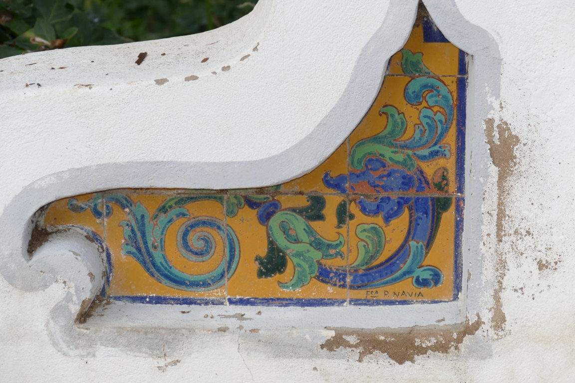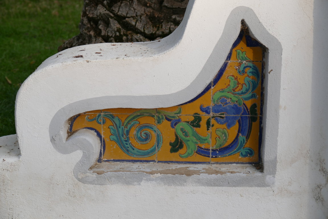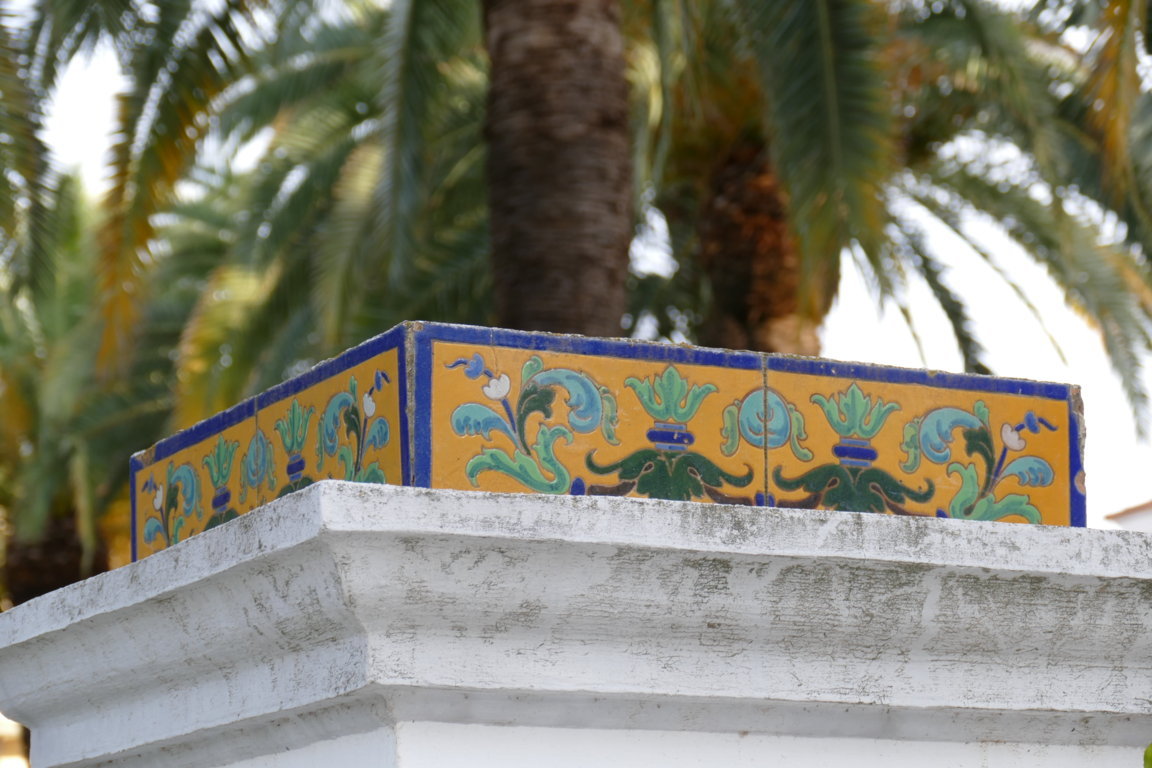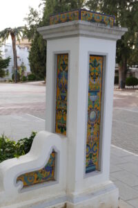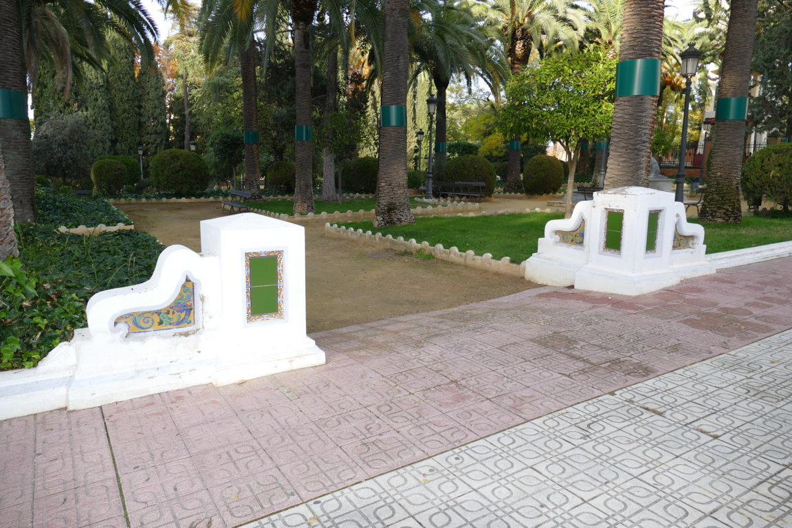 08806. Pilares con decoración cerámica. Parque de la Piedad. Almendralejo. Badajoz.