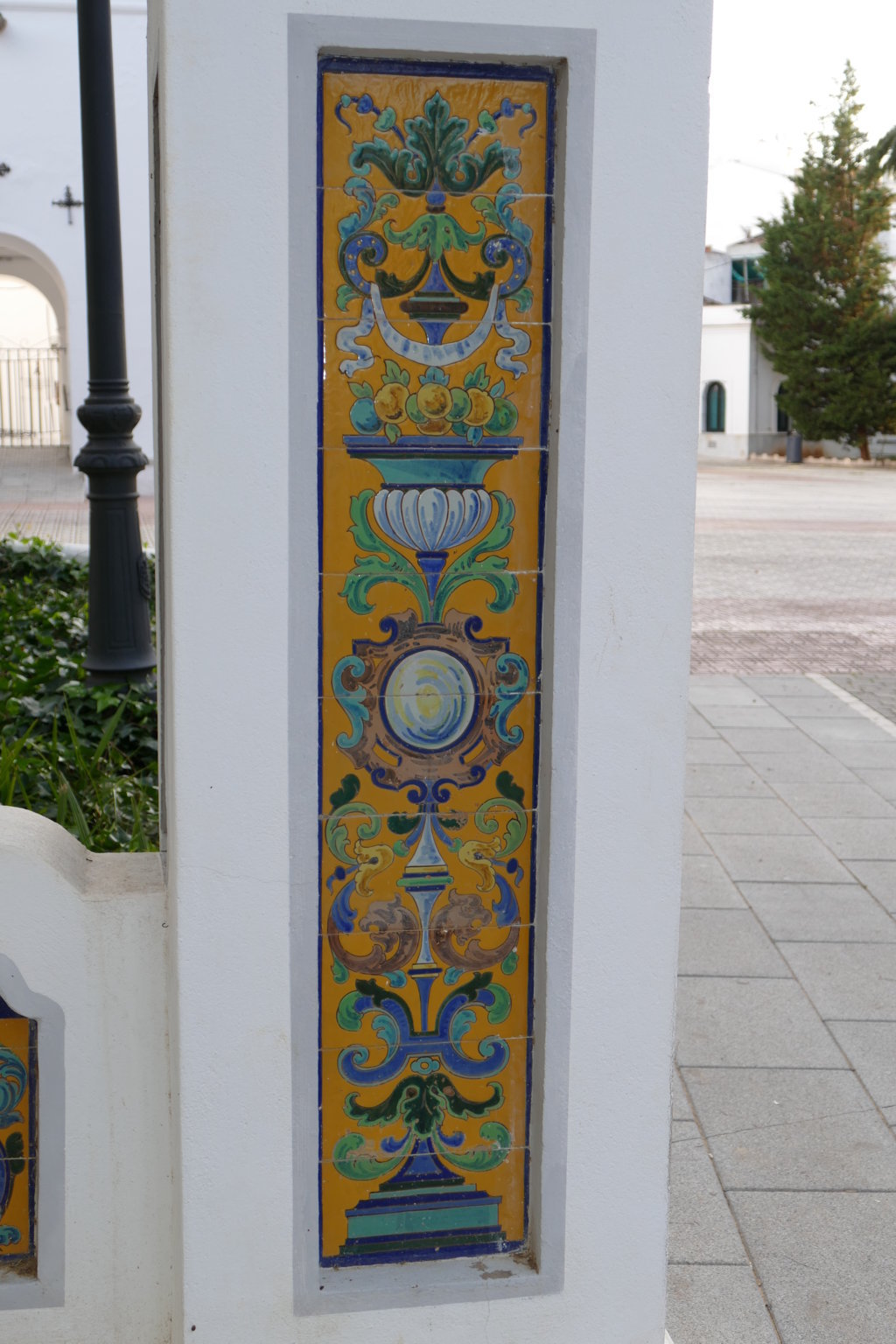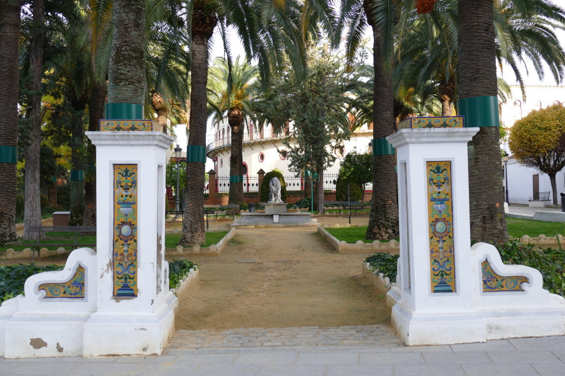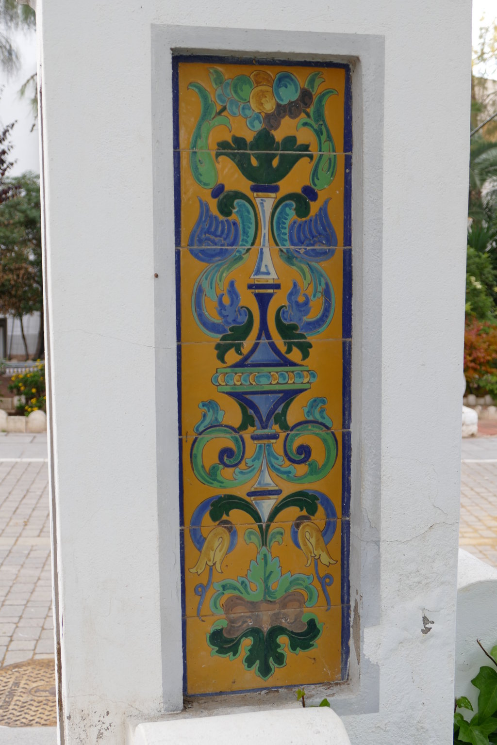08806. Pilares con decoración cerámica. Parque de la Piedad. Almendralejo. Badajoz.