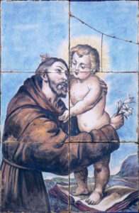 Inicio Obras 08810. Retablo cerámico. San Antonio de Padua. La Algaba. Sevilla. 08810. Retablo cerámico. San Antonio de Padua. La Algaba. Sevilla. Código08810Tipo de obraRetablo cerámicoFunciónDevocionalTipo de panelPictóricoAutorDesconocido (J.O., iniciales)Fuente de autoríaPor operación comparativaCronologíaDécada de 1900Fuente de la cronologíaEstimaciónDimensiones0,20 m. x 0,60 m. (aprox.)Pieza datadaNo Lugar exacto donde se encuentraFachada de domicilio particular. Avenida 1º de Mayo, 50-52PoblaciónLa AlgabaProvinciaSevillaPaísEspañaSituada en elExteriorLugar de producciónSevillaZona de producciónAndalucíaTécnica decorativaAzulejo plano pintadoTema de decoración o temáticaReligiosa - hagiográficaPersonajes representadosAntonio de Padua, SanJesús de Nazaret NiñoEstado de conservaciónPérdidas de vidriadoRotura Autor de las fotografíasManuel Pablo Rodríguez Rodríguez. Julio 2013