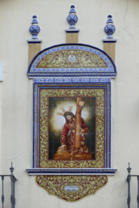 Inicio Obras 08811. Retablo cerámico. Cristo de las Tres Caídas. Sevilla. 08811. Retablo cerámico. Cristo de las Tres Caídas. Sevilla. Código08811Tipo de obraLoza estanníferaPanel de azulejosRetablo cerámicoFunciónConmemorativaDevocionalTipo de panelPictóricoAutoresHeredia Burguillos, EmilioLora Serrano, ÁngelGarcía Ortiz, EmilioFuente de autoríaFirmadoCronología2012Fuente de la cronologíaConocimiento directoPieza datadaSi Lugar exacto donde se encuentraFachada de domicilio particular. Plaza del Altozano, 6PoblaciónSevillaProvinciaSevillaPaísEspañaSituada en elExteriorLugar de producciónSevillaZona de producciónAndalucíaTécnica decorativaAzulejo plano pintadoLoza pintadaTema de decoración o temáticaReligiosa - pasionistaEscenaJesús caídoPersonajes representadosJesús de NazaretAdvocacionesTres CaídasTres Caídas (Triana) BibliografíaNoticia relacionada (VER) Autor de las fotografíasAntonio Entrena Aznarte. Diciembre 2025