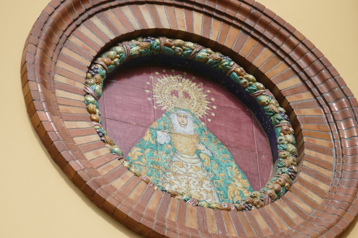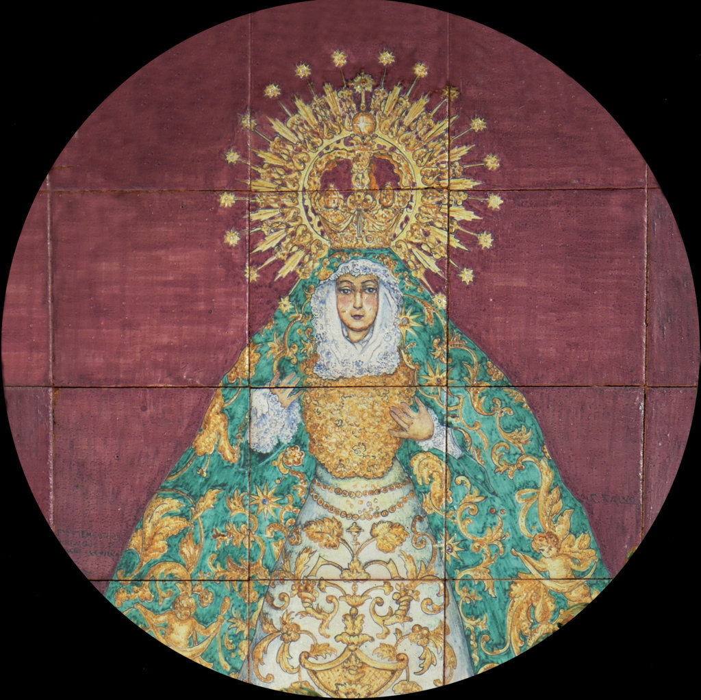 08820. Retablo cerámico. Virgen de la Esperanza Macarena. Casa Luca de Tena. Sevilla.