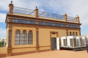 Fachadas y azotea de la Casa Luca de Tena. Avenida de la Palmera, 48