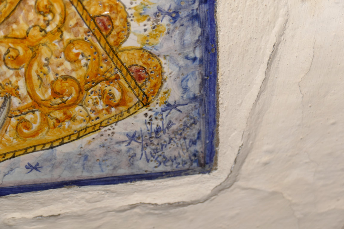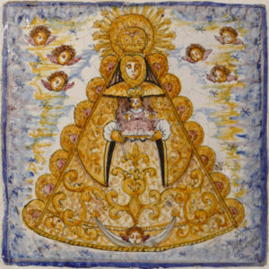 Inicio Obras 08832. Retablo cerámico. Virgen del Rocío. Palacio de las Dueñas. Sevilla. 08832. Retablo cerámico. Virgen del Rocío. Palacio de las Dueñas. Sevilla. Código08832Tipo de obraAzulejoRetablo cerámicoFunciónDevocionalTipo de panelPictóricoAutorVela Navarro, JuanTallerLuchana, Cerámica ArtísticaFuente de autoríaFirmadoCronologíaPrincipios de la década de 2010Fuente de la cronologíaDatado en la obra. No es posible identificar el último dígito de la fechaDimensiones0,20 m. x 0,20 m. (aprox.)Pieza datadaNo Lugar exacto donde se encuentraAntecapilla. Palacio de las Dueñas. Calle Dueñas, 5PoblaciónSevillaProvinciaSevillaPaísEspañaSituada en elInteriorLugar de producciónSevillaZona de producciónAndalucíaTécnica decorativaAzulejo plano pintadoTema de decoración o temáticaReligiosa - letíficaEscenaVirgen con el NiñoPersonajes representadosÁngelJesús de Nazaret NiñoVirgen MaríaAdvocacionesRocíoRocío (Almonte) ConjuntoSevilla. Palacio de las Dueñas Autor de las fotografíasManuel Pablo Rodríguez Rodríguez. Diciembre 2025