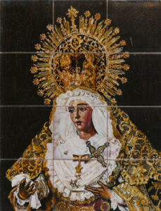 Inicio Obras 08836. Retablo cerámico. Virgen de la Esperanza de Triana. Sevilla. 08836. Retablo cerámico. Virgen de la Esperanza de Triana. Sevilla. Código08836Tipo de obraRetablo cerámicoFunciónDevocionalTipo de panelPictóricoAutorOrce Villar, Alfonso CarlosFuente de autoríaFirmadoCronología1987Fuente de la cronologíaComunicación de Martín Carlos Palomo GarcíaDimensiones0,45 m. x 0,60 m. (aprox.)Pieza datadaSi Lugar exacto donde se encuentraFachada de domicilio particular. Calle Covadonga, 14PoblaciónSevillaProvinciaSevillaPaísEspañaSituada en elExteriorLugar de producciónSevillaZona de producciónAndalucíaTécnica decorativaAzulejo plano pintadoTema de decoración o temáticaReligiosa - pasionistaPersonajes representadosVirgen MaríaAdvocacionesEsperanzaEsperanza de Triana Autor de las fotografíasAntonio Entrena Aznarte. Diciembre 2025