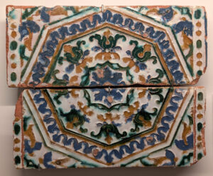 Se trata con toda probabilidad de piezas realizadas por artesanos toledanos desplazados a Granada para elaborar los azulejos necesarios en las sucesivas reformas de la Alhambra a lo largo del siglo XVI. (Ángel Sánchez-Cabezudo Gómez)