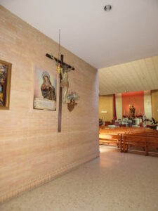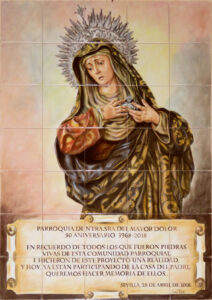 Inicio Obras 08869. Retablo cerámico. Virgen del Mayor Dolor. Parroquia de Nuestra Señora del Mayor Dolor. Sevilla. 08869. Retablo cerámico. Virgen del Mayor Dolor. Parroquia de Nuestra Señora del Mayor Dolor. Sevilla. Código08869Tipo de obraRetablo cerámicoFunciónConmemorativaDevocionalTipo de panelPictóricoAutorParente Rioja, IsabelFuente de autoríaFirmadoCronología2018Fuente de la cronologíaDatado en la obraDimensiones0,75 m. x 1,05 m. (aprox.)Pieza datadaSi Lugar exacto donde se encuentraInterior de la Iglesia Parroquial de Nuestra Señora del Mayor Dolor. Calle Madre San Marcelo (La Barzola)PoblaciónSevillaProvinciaSevillaPaísEspañaSituada en elInteriorLugar de producciónSevillaZona de producciónAndalucíaTécnica decorativaAzulejo plano pintadoTema de decoración o temáticaEpigráficaReligiosa - pasionistaPersonajes representadosVirgen MaríaAdvocacionesMayor Dolor Autor de las fotografíasAlfonso García García. Diciembre 2025