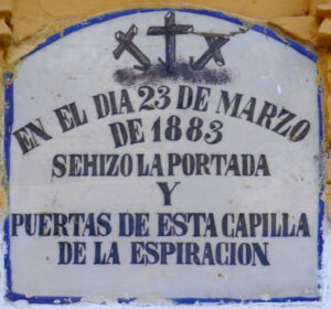 Inicio Obras 08871. Placa conmemorativa. Capilla del Museo. Sevilla. 08871. Placa conmemorativa. Capilla del Museo. Sevilla. Código08871Tipo de obraPlacaFunciónConmemorativaTipo de panelPictóricoAutorDesconocidoCronología1883Fuente de la cronologíaDatado en la obraDimensiones0,30 m. x 0,35 m. (aprox.)Pieza datadaSi Lugar exacto donde se encuentraFachada de la Capilla de la Hermandad del Museo. Plaza del MuseoPoblaciónSevillaProvinciaSevillaPaísEspañaSituada en elExteriorLugar de producciónSevillaZona de producciónAndalucíaTécnica decorativaAzulejo plano pintadoTema de decoración o temáticaEpigráfica Autor de las fotografíasManuel Pablo Rodríguez Rodríguez. Diciembre 2025