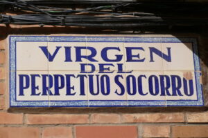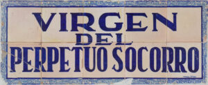 Inicio Obras 08881. Rótulos de la calle Virgen del Perpetuo Socorro. Sevilla. 08881. Rótulos de la calle Virgen del Perpetuo Socorro. Sevilla. Código08881Tipo de obraRótulo de calleFunciónInformación urbanaTipo de panelPictóricoAutorDesconocidoTallerCerámica Santa Ana. FábricaFuente de autoríaFirmadoCronologíaDécada de 1960Fuente de la cronologíaEstimaciónDimensiones0,75 m. x 0,30 m. (aprox.)Pieza datadaNo Lugar exacto donde se encuentraFachadas de domicilios particulares en ambos extremos de la vía. Calle Virgen del Perpetuo SocorroPoblaciónSevillaProvinciaSevillaPaísEspañaSituada en elExteriorLugar de producciónSevillaZona de producciónAndalucíaTécnica decorativaAzulejo plano pintadoTema de decoración o temáticaEpigráficaEstado de conservaciónPiezas rotas Autor de las fotografíasManuel Pablo Rodríguez Rodríguez. Diciembre 2025