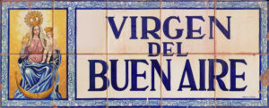 Inicio Obras 08885. Rótulos de la calle Virgen del Buen Aire. Sevilla. 08885. Rótulos de la calle Virgen del Buen Aire. Sevilla. Código08885Tipo de obraRótulo de calleFunciónInformación urbanaTipo de panelPictóricoAutorDesconocidoTallerCerámica Santa Ana. FábricaFuente de autoríaFirmadoCronologíaDécada de 1960Fuente de la cronologíaEstimaciónDimensiones0,75 m. x 0,30 m. (aprox.)Pieza datadaNo Lugar exacto donde se encuentraFachadas de domicilios particulares en ambos extremos de la vía. Calle Virgen del Buen AirePoblaciónSevillaProvinciaSevillaPaísEspañaSituada en elExteriorLugar de producciónSevillaZona de producciónAndalucíaTécnica decorativaAzulejo plano pintadoTema de decoración o temáticaEpigráficaReligiosa - letíficaEscenaVirgen con el NiñoPersonajes representadosJesús de Nazaret NiñoVirgen MaríaAdvocacionesBuen AireEstado de conservaciónAlguna zona en mal estado Autor de las fotografíasManuel Pablo Rodríguez Rodríguez. Diciembre 2025