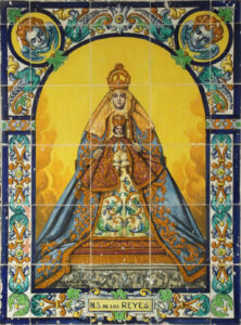Inicio Obras 08900. Retablo cerámico. Virgen de los Reyes. Sevilla. 08900. Retablo cerámico. Virgen de los Reyes. Sevilla. Código08900Tipo de obraRetablo cerámicoFunciónDevocionalTipo de panelPictóricoAutorHornillo Pérez, AntonioTallerCerámica Santa Ana. FábricaFuente de autoríaFirmadoCronologíaDécada de 1940Fuente de la cronologíaEstimaciónDimensiones0,60 m. x 0,80 m. (aprox.)Pieza datadaNo Lugar exacto donde se encuentraPatio del Hotel Casas de Santa Cruz. Calle Pimienta, 4PoblaciónSevillaProvinciaSevillaPaísEspañaSituada en elInteriorLugar de producciónSevillaZona de producciónAndalucíaTécnica decorativaAzulejo plano pintadoTema de decoración o temáticaReligiosa - letíficaEscenaVirgen con el NiñoPersonajes representadosJesús de Nazaret NiñoVirgen MaríaAdvocacionesReyesEstado de conservaciónPérdidas de vidriado Autor de las fotografíasManuel Pablo Rodríguez Rodríguez. Mayo 2012