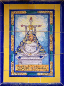 Inicio Obras 08914. Retablo cerámico. Virgen de las Angustias. Granada. (Desaparecido) 08914. Retablo cerámico. Virgen de las Angustias. Granada. (Desaparecido) Código08914Tipo de obraRetablo cerámicoFunciónDevocionalTipo de panelPictóricoAutorDesconocidoTallerMensaque Rodríguez y Compañía. FábricaFuente de autoríaFirmadoCronologíaDécada de 1930Fuente de la cronologíaEstimaciónDimensiones0,28 m. x 0,42 m. (aprox.)Pieza datadaNo Lugar exacto donde se encuentraFachada de domicilio particular. Calle Azhuma. (Desaparecido por demolición de la casa en el año 2018)PoblaciónGranadaProvinciaGranadaPaísEspañaSituada en elExteriorLugar de producciónSevillaZona de producciónAndalucíaTécnica decorativaAzulejo plano pintadoTema de decoración o temáticaReligiosa - pasionistaEscenaJesús descendido de la cruzPersonajes representadosJesús de NazaretVirgen MaríaAdvocacionesAngustiasAngustias (Patrona de Granada) Autor de las fotografíasAntonio Entrena Aznarte. Marzo 2007