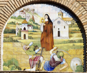 Inicio Obras 08921. Retablo cerámico. Santa Clara de Asís. Convento de Santa Clara. Estepa. Sevilla. 08921. Retablo cerámico. Santa Clara de Asís. Convento de Santa Clara. Estepa. Sevilla. Código08921Tipo de obraRetablo cerámicoFunciónDevocionalTipo de panelPictóricoAutorMartínez Adorna, AntonioTallerCerámica Santa Ana. FábricaFuente de autoríaFirmadoCronologíaDécada de 1970Fuente de la cronologíaEstimaciónDimensiones2,10 m. x 1,80 m. (aprox.)Pieza datadaNo Lugar exacto donde se encuentraFachada del Convento de Santa Clara. Cerro de San CristóbalPoblaciónEstepaProvinciaSevillaPaísEspañaSituada en elInteriorLugar de producciónSevillaZona de producciónAndalucíaTécnica decorativaAzulejo plano pintadoTema de decoración o temáticaReligiosa - hagiográficaPersonajes representadosClara de Asís, SantaJesús Sacramentado Autor de las fotografíasManuel Pablo Rodríguez Rodríguez. Diciembre 2012