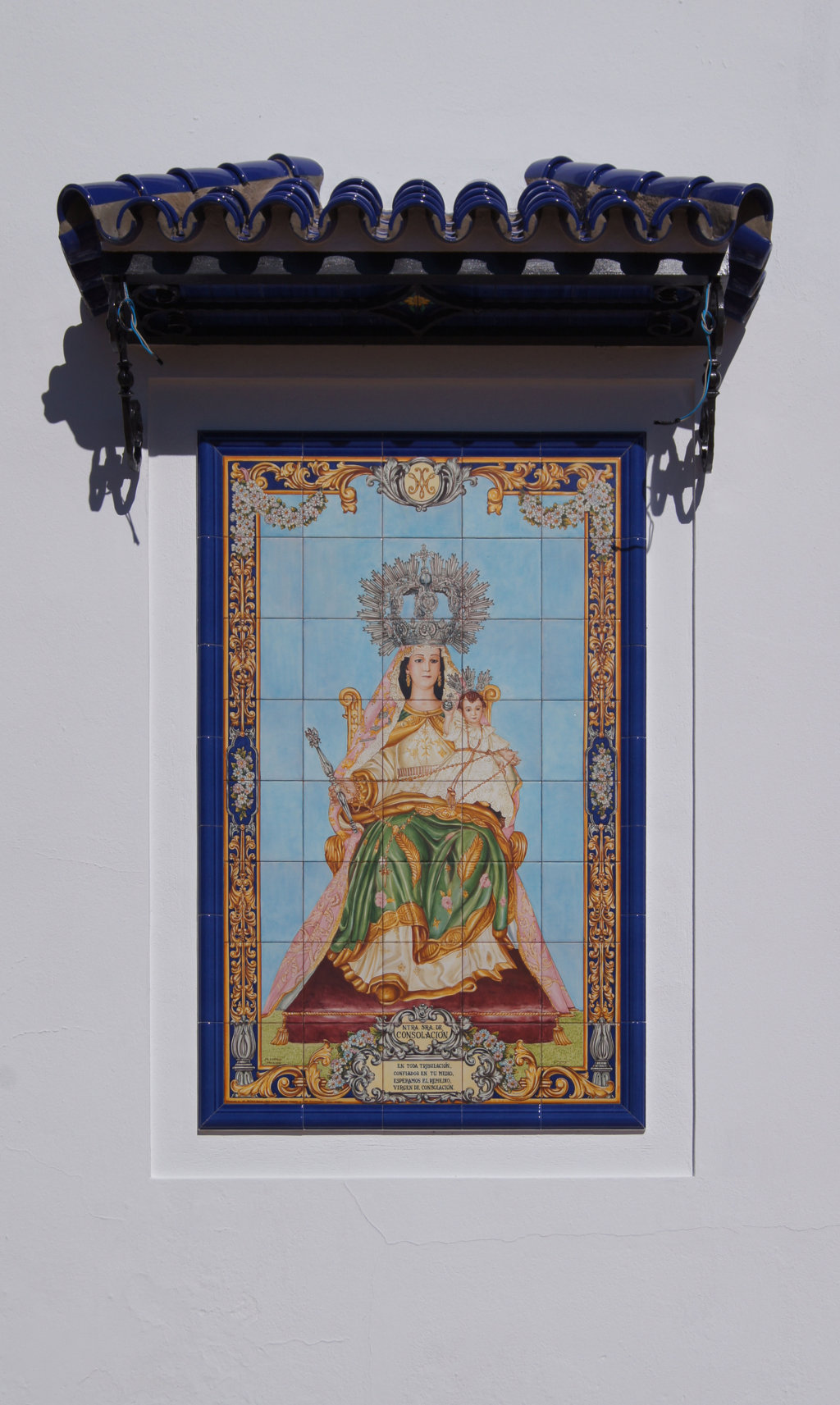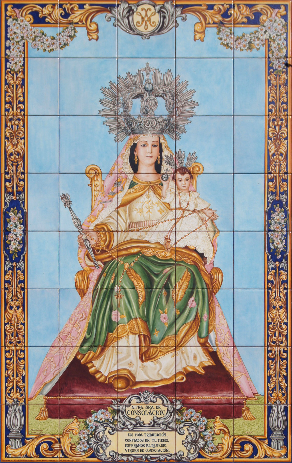 Inicio Obras 08926. Retablo cerámico. Virgen de Consolación. Cartaya. Huelva. 08926. Retablo cerámico. Virgen de Consolación. Cartaya. Huelva. Código08926Tipo de obraRetablo cerámicoFunciónDevocionalTipo de panelPictóricoAutorMoya Toro, Francisco JoséTallerJoaquín Soriano, Cerámica Artística. TallerFuente de autoríaFirmadoCronología2012Fuente de la cronologíaComunicación de Gonzalo Navarro AmbrojoDimensiones0,75 m. x 1,20 m. (aprox.)Pieza datadaSi Lugar exacto donde se encuentraFachada lateral de la Ermita de Nuestra Señora de ConsolaciónPoblaciónCartayaProvinciaHuelvaPaísEspañaSituada en elExteriorLugar de producciónBenacazónZona de producciónAndalucíaTécnica decorativaAzulejo plano pintadoTema de decoración o temáticaReligiosa - letíficaEscenaVirgen con el NiñoPersonajes representadosJesús de Nazaret NiñoVirgen MaríaAdvocacionesConsolación Autor de las fotografíasGonzalo Navarro Ambrojo. Diciembre 2012