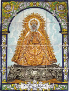Inicio Obras 08928. Retablo cerámico. Virgen de Gracia. Carmona. Sevilla. 08928. Retablo cerámico. Virgen de Gracia. Carmona. Sevilla. Código08928Tipo de obraRetablo cerámicoFunciónDevocionalTipo de panelPictóricoAutorSánchez Palacios, JuanTallerMacarena, Cerámica. TallerFuente de autoríaFirmadoCronología1990Fuente de la cronologíaDatado en azulejo bajo el retabloDimensiones0,45 m. x 0,60 m. (aprox.)Pieza datadaSi Lugar exacto donde se encuentraZaguán de domicilio particular. Calle San Felipe, 3PoblaciónCarmonaProvinciaSevillaPaísEspañaSituada en elInteriorLugar de producciónSevillaZona de producciónAndalucíaTécnica decorativaAzulejo plano pintadoTema de decoración o temáticaReligiosa - letíficaEscenaVirgen con el NiñoPersonajes representadosJesús de Nazaret NiñoVirgen MaríaAdvocacionesGraciaGracia (Carmona) Autor de las fotografíasManuel Pablo Rodríguez Rodríguez. Noviembre 2012