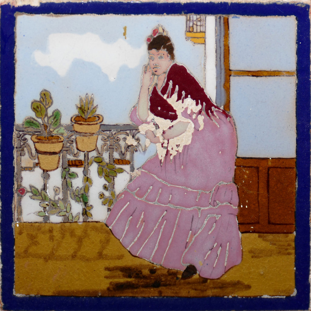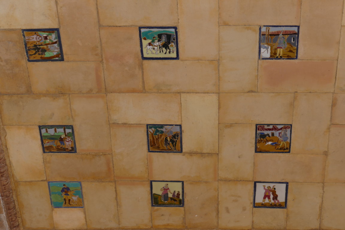 Inicio Obras 08943. Azulejos decorativos en zócalo y techo. Zafra. Badajoz. 08943. Azulejos decorativos en zócalo y techo. Zafra. Badajoz. Código08943Tipo de obraAzulejoFunciónOrnamentalTipo de panelPictóricoAutorDesconocidoCronologíaDécada de 1920Fuente de la cronologíaEstimaciónDimensiones0,20 m. cada azulejoPieza datadaNo Lugar exacto donde se encuentraInterior de domicilio particular. Calle Gobernador, 9PoblaciónZafraProvinciaBadajozPaísEspañaSituada en elInteriorLugar de producciónSevillaZona de producciónAndalucíaTécnica decorativaMixta de cuerda seca y azulejo plano pintadoTema de decoración o temáticaCostumbristaEscena de galanteoFiestas popularesFiestas populares de SevillaPaisaje urbanoQuijotescaEstado de conservaciónPiezas rotas Autor de las fotografíasManuel Pablo Rodríguez Rodríguez. Diciembre 2025