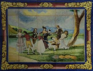 Inicio Obras 08965. Panel con escena goyesca. Colección Prellezo. Sevilla. 08965. Panel con escena goyesca. Colección Prellezo. Sevilla. Código08965Tipo de obraPanel de azulejosFunciónOrnamentalTipo de panelPictóricoAutorMorilla, M.TallerMensaque Rodríguez y Compañía. FábricaFuente de autoríaFirmadoCronologíaDécada de 1920Fuente de la cronologíaEstimaciónDimensiones1,00 m. x 0,80 m. (aprox)Pieza datadaNo Lugar exacto donde se encuentraColección PrellezoPoblaciónSevillaProvinciaSevillaPaísEspañaSituada en elInteriorLugar de producciónSevillaZona de producciónAndalucíaTécnica decorativaAzulejo plano pintadoTema de decoración o temáticaGoyescaReproducción de cuadroColecciónPrellezo Fuente gráficaLienzo de Francisco de Goya conservado en el Museo del Prado Lienzo de Goya conservado en el Museo del Prado usado como modelo para la ejecución de este panel de azulejos. Fotografía: Wikipedia. Autor de las fotografíasManuel Pablo Rodríguez Rodríguez. Septiembre 2016