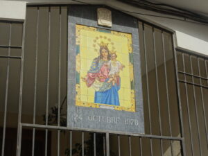 Inicio Obras 08972. Retablo cerámico. María Auxiliadora. Montilla. Córdoba. 08972. Retablo cerámico. María Auxiliadora. Montilla. Córdoba. Código08972Tipo de obraRetablo cerámicoFunciónDevocionalTipo de panelPictóricoAutorMármol Rodrigo, EnriqueTallerNuestra Señora Santa Ana. FábricaFuente de autoríaFirmadoCronologíaDécada de 1930Fuente de la cronologíaEstimaciónDimensiones0,75 m. x 1,05 m. (aprox.)Pieza datadaNo Lugar exacto donde se encuentraFachada del colegio salesiano. Calle Arcipreste Fernández Casado, 3PoblaciónMontillaProvinciaCórdobaPaísEspañaSituada en elExteriorLugar de producciónSevillaZona de producciónAndalucíaTécnica decorativaMixta de cuerda seca y azulejo plano pintadoTema de decoración o temáticaReligiosa - letíficaEscenaVirgen con el NiñoPersonajes representadosJesús de Nazaret NiñoVirgen MaríaAdvocacionesAuxiliadoraEstado de conservaciónPérdidas de vidriado Autor de las fotografíasJosé Manuel Leiva Pérez. Julio 2022