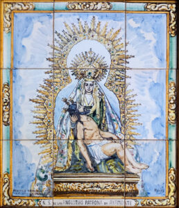 Inicio Obras 08978. Retablo cerámico. Virgen de las Angustias. Ayamonte. Huelva. 08978. Retablo cerámico. Virgen de las Angustias. Ayamonte. Huelva. Código08978Tipo de obraRetablo cerámicoFunciónDevocionalTipo de panelPictóricoAutorMacías y Macías, JoséTallerMensaque Rodríguez y Compañía. FábricaFuente de autoríaFirmadoCronologíaDécada de 1930Fuente de la cronologíaEstimaciónDimensiones0,50 m. x 0,60 m. (aprox.)Pieza datadaNo Lugar exacto donde se encuentraDomicilio particularPoblaciónAyamonteProvinciaHuelvaPaísEspañaSituada en elInteriorLugar de producciónSevillaZona de producciónAndalucíaTécnica decorativaAzulejo plano pintadoTema de decoración o temáticaReligiosa - pasionistaEscenaJesús descendido de la cruzPersonajes representadosJesús de NazaretVirgen MaríaAdvocacionesAngustiasAngustias (Ayamonte) Autor de las fotografíasHugo Gómez Jesús. Enero 2026