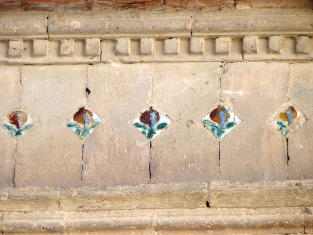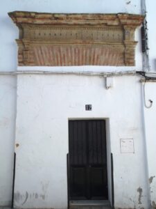 La portada conserva la parte superior de la misma realizada en ladrillo agramilado. Entre el dintel y la cornisa existe un friso donde se encajan 17 pequeños azulejos que contienen como único motivo una granada. A izquierda y derecha de este friso hay dos piezas de mayor tamaño con otro diseño.