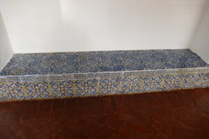Inicio Obras 09042. Bancos. Convento de Santa Clara. Zafra. Badajoz. 09042. Bancos. Convento de Santa Clara. Zafra. Badajoz. Código09042Tipo de obraBancoFunciónArquitectónicaTipo de panelDe patrónAutorDesconocidoCronologíaSiglo XVIIIFuente de la cronologíaEstimaciónPieza datadaNo Lugar exacto donde se encuentraClasutro del monasterio de Nuestra Señora del Valle (convento de Santa Clara). Calle SevillaPoblaciónZafraProvinciaBadajozPaísEspañaSituada en elInteriorLugar de producciónSevillaZona de producciónAndalucíaTécnica decorativaAzulejo plano pintadoTema de decoración o temáticaVegetal Autor de las fotografíasManuel Pablo Rodríguez Rodríguez. Diciembre 2025