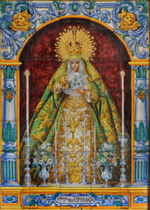 09062. Retablo cerámico. Virgen de la Esperanza Macarena. Sanlúcar la Mayor. Sevilla.