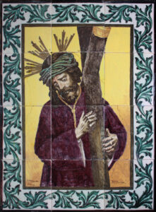 Inicio Obras 09066. Retablo cerámico. Jesús del Gran Poder. Sevilla. 09066. Retablo cerámico. Jesús del Gran Poder. Sevilla. Código09066Tipo de obraRetablo cerámicoFunciónDevocionalTipo de panelPictóricoAutorMolina Sánchez, Pedro Pascual (P.P. Molina)TallerManuel Montero Asquith, FábricaFuente de autoríaFirmadoCronologíaDécada de 1920Fuente de la cronologíaEstimaciónDimensiones0,45 m. x 0,60 m. (aprox.)Pieza datadaNo Lugar exacto donde se encuentraUbicación desconocidaPoblaciónSevillaProvinciaSevillaPaísEspañaLugar de producciónSevillaZona de producciónAndalucíaTécnica decorativaAzulejo plano pintadoTema de decoración o temáticaReligiosa - pasionistaEscenaJesús con la cruz al hombroPersonajes representadosJesús de NazaretAdvocacionesGran PoderGran Poder (Sevilla) Autor de las fotografíasCristina Vílchez Vigil. Noviembre 2018
