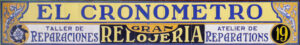 Inicio Obras 09072. Paneles publicitarios. El Cronómetro, Enrique Sanchís. Sevilla. 09072. Paneles publicitarios. El Cronómetro, Enrique Sanchís. Sevilla. Código09072Tipo de obraPanel de azulejosFunciónPublicitariaTipo de panelPictóricoAutorDesconocidoTallerMensaque y Vera, José (Hijo de). FábricaFuente de autoríaFirmadoCronologíaDécada de 1920Fuente de la cronologíaEstimaciónPieza datadaNo Lugar exacto donde se encuentraFachada de El Cronómetro. Calle Sierpes, 19PoblaciónSevillaProvinciaSevillaPaísEspañaSituada en elExteriorLugar de producciónSevillaZona de producciónAndalucíaTécnica decorativaCuerda secaTema de decoración o temáticaEpigráficaPublicitaria Autor de las fotografíasManuel Pablo Rodríguez Rodríguez. Febrero 2026