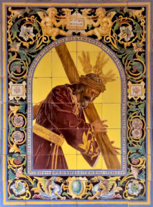 Inicio Obras 09074. Retablo cerámico. Jesús de la Pasión. Sevilla. 09074. Retablo cerámico. Jesús de la Pasión. Sevilla. Código09074Tipo de obraRetablo cerámicoFunciónDevocionalTipo de panelPictóricoAutorDesconocidoTallerRodríguez Díaz y Hno. (Posteriormente S.L.)Fuente de autoríaFirmadoCronologíaDécada de 1920Fuente de la cronologíaEstimaciónDimensiones0,90 m. x 1,20 m. (aprox.)Pieza datadaNo Lugar exacto donde se encuentraPropiedad particularPoblaciónSevillaProvinciaSevillaPaísEspañaSituada en elInteriorLugar de producciónSevillaZona de producciónAndalucíaTécnica decorativaMixta de cuerda seca y azulejo plano pintadoTema de decoración o temáticaReligiosa - pasionistaEscenaJesús con la cruz al hombroPersonajes representadosJesús de NazaretAdvocacionesPasiónPasión (Sevilla)Estado de conservaciónPérdidas de vidriadoRotura Autor de las fotografíasAntonio Luis López Martínez. Abril 2020