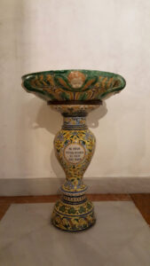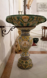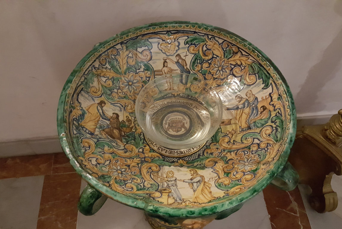 Inicio Obras 09101. Pila de agua bendita. Iglesia de San Román. Sevilla. 09101. Pila de agua bendita. Iglesia de San Román. Sevilla. Código09101Tipo de obraBenditeraLoza estanníferaFunciónReligiosa, ritualAutorDesconocidoTallerMontalván. FábricaFuente de autoríaPor operación comparativaCronologíaDécada de 1940Fuente de la cronologíaEstimaciónPieza datadaNo Lugar exacto donde se encuentraInterior de la Parroquia de San Román. Plaza de San RománPoblaciónSevillaProvinciaSevillaPaísEspañaSituada en elInteriorLugar de producciónSevillaZona de producciónAndalucíaTécnica decorativaLoza pintadaTema de decoración o temáticaHeráldicaReligiosa - letíficaEscenaBautismo de CristoEncuentro de Jesús con la samaritanaPersonajes representadosJesús de NazaretJuan Bautista, SanPedro Apóstol, SanSamaritana Leyenda que contiene la obraDONADO - POR - LOS - EXCMOS - SRS- CONDES - DE - LAS - TORRES - SANCHEZ- DALP Autor de las fotografíasJosé Ramón Morilla Aseijas. Marzo 2018