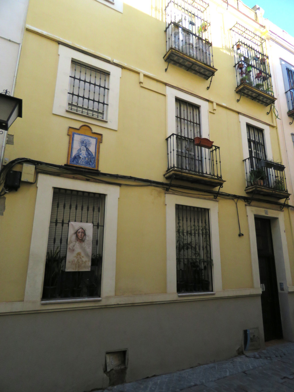 Inicio Obras 09103. Retablo cerámico. Virgen de la Esperanza Macarena. Sevilla. 09103. Retablo cerámico. Virgen de la Esperanza Macarena. Sevilla. Código09103Tipo de obraRetablo cerámicoFunciónDevocionalTipo de panelPictóricoAutorDesconocidoFuente de la cronologíaEstimaciónDimensiones0,45 m. x 0,60 m. (aprox.)Pieza datadaNo Lugar exacto donde se encuentraFachada de domicilio particular. Calle Torreblanca, 22PoblaciónSevillaProvinciaSevillaPaísEspañaSituada en elExteriorLugar de producciónSevillaZona de producciónAndalucíaTécnica decorativaAzulejo plano pintadoTema de decoración o temáticaReligiosa - pasionistaPersonajes representadosVirgen MaríaAdvocacionesEsperanzaEsperanza Macarena Autor de las fotografíasAlfonso García García. Febrero 2026